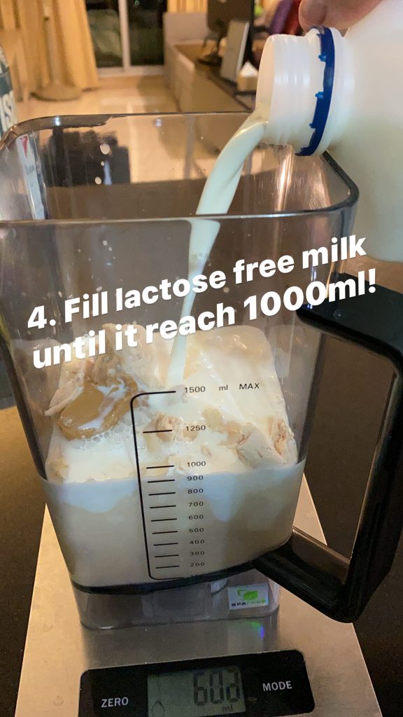 สัดส่วนวัตถุดิบด้านล่างนี้ สำหรับทำอกไก่ปั่น 2 แก้ว (1,000ml)